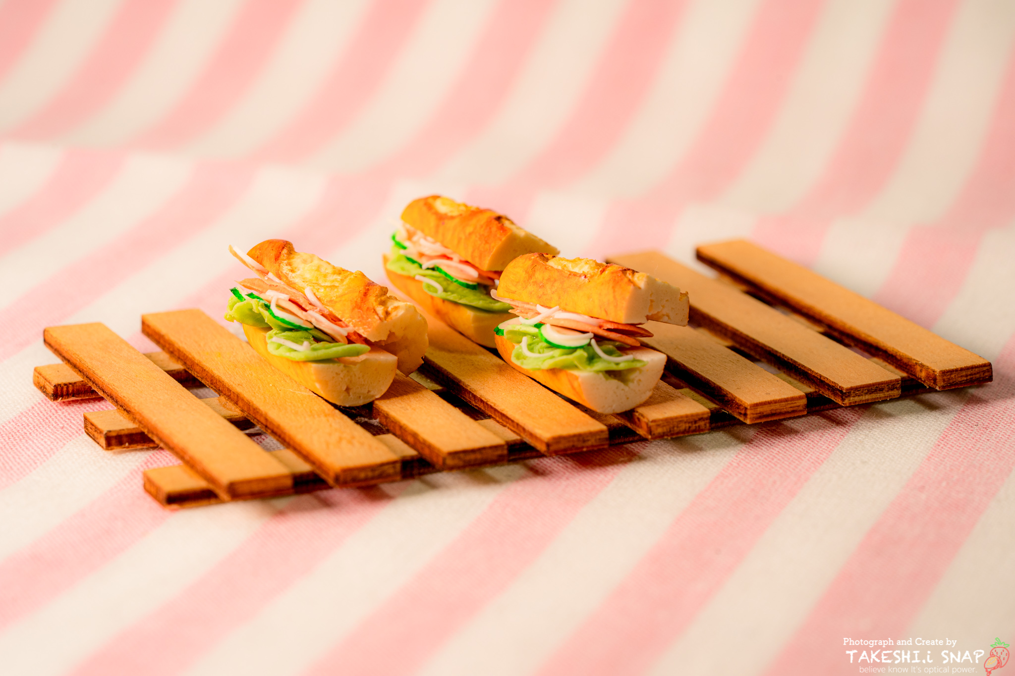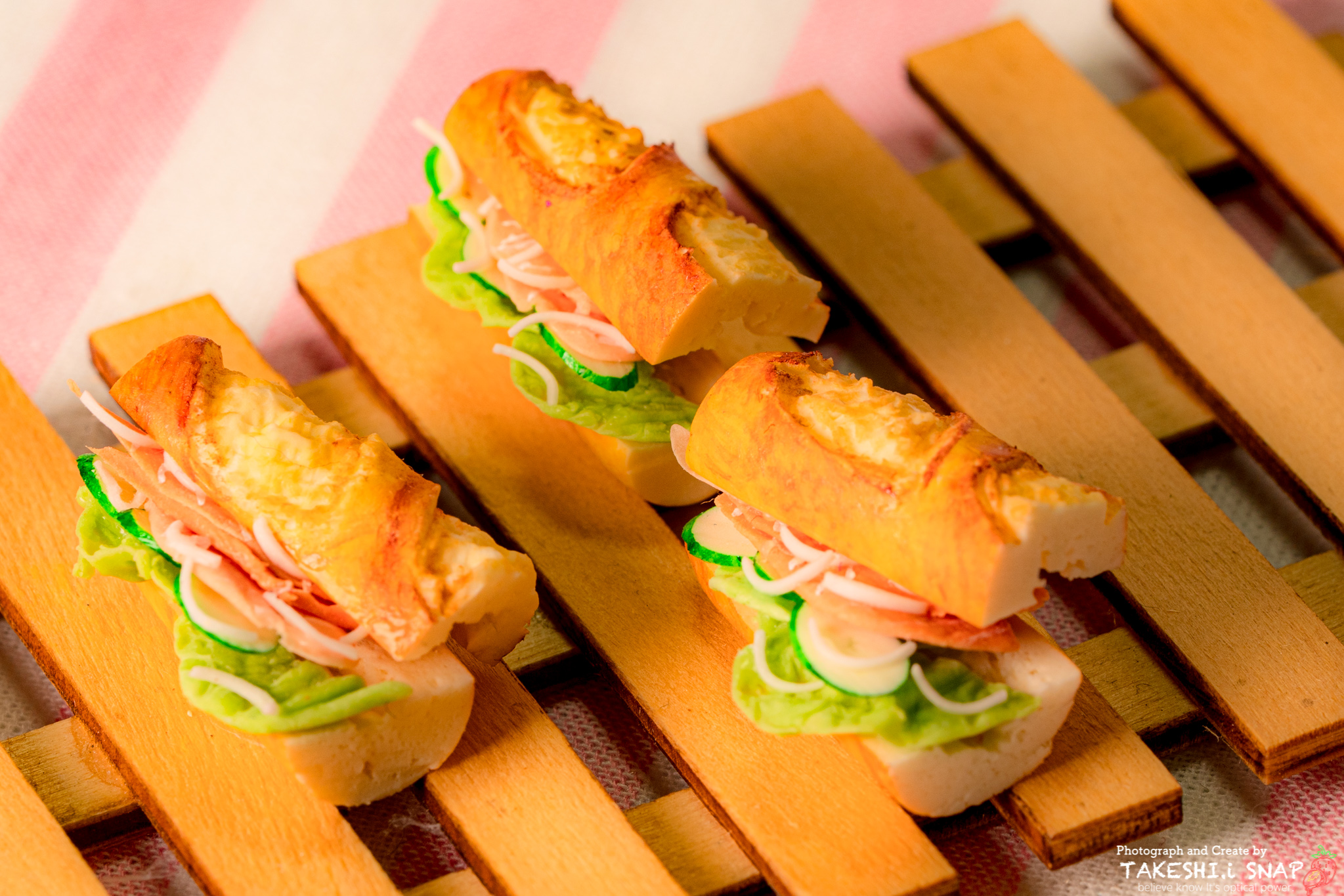 樹脂粘土で作るミニチュアフード57号のスモークサーモンサンドですが、イマイチスィーツデコ感はありませんが、ミニチュアフードと言うことで。